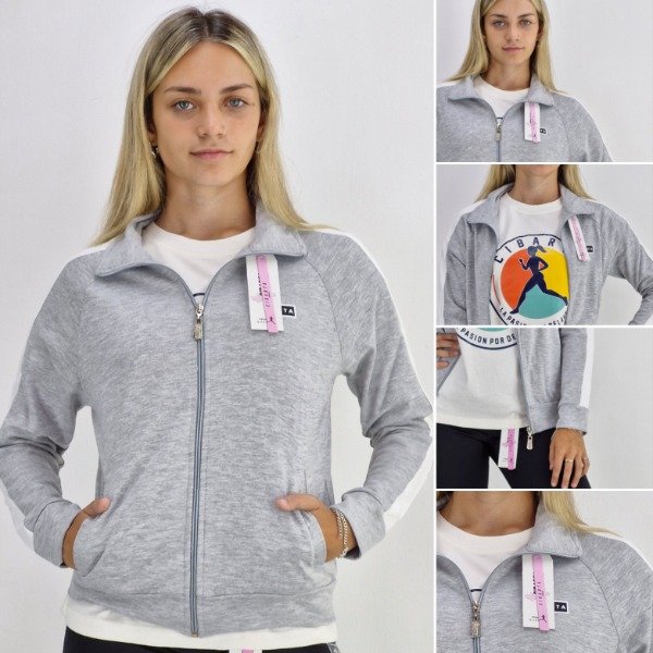 Campera Cibarta Modelo FlyFit Gris banda Lateral blanca
