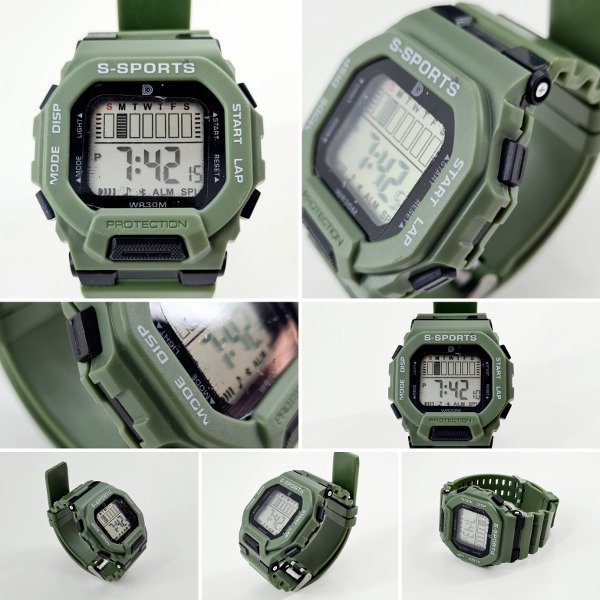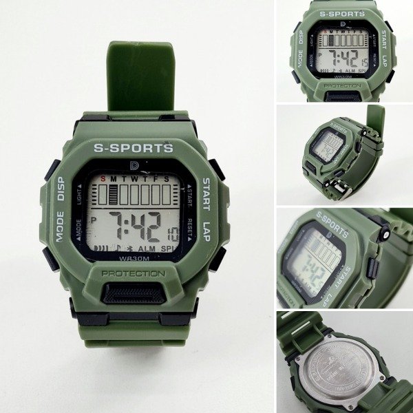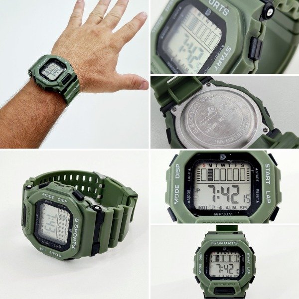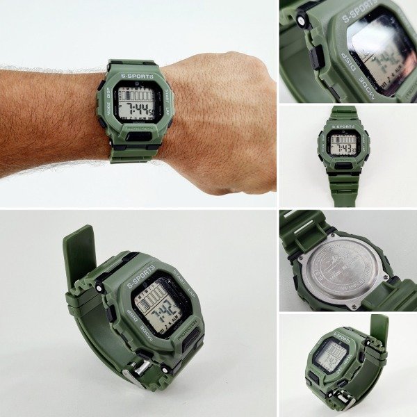 Reloj deportivo 2301 Verde Militar Sumergible Malla de goma Importado Unisex