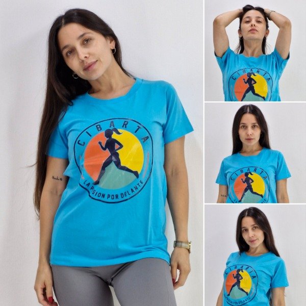 Remera Mujer Deportiva Cibarta Runner Women CELESTE algodón