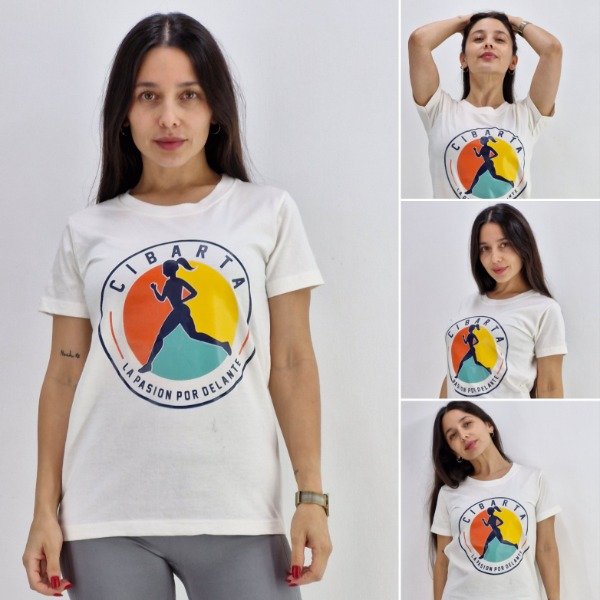 Remera Mujer Deportiva Cibarta Runner Women CREMA algodón