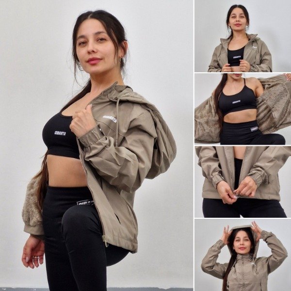 Campera Cibarta Modelo Esmeralda MH- 76656 Beige logo clasico