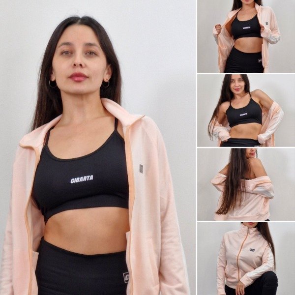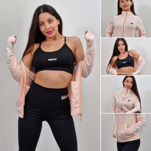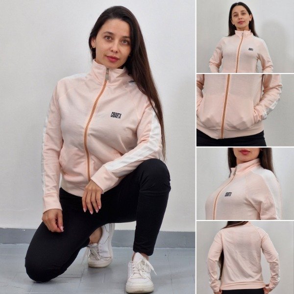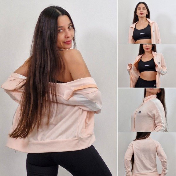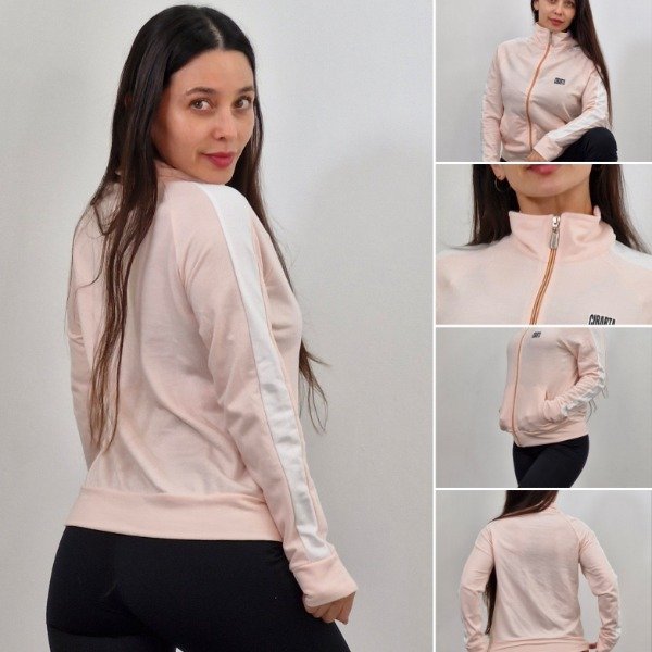 Campera Cibarta Modelo Tenis Fem salmon Vintage banda Lateral blanca